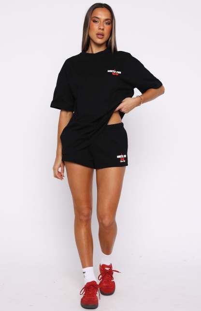 Comfort is an attitude, and this set embodies it. The Club 14 Cassie Lounge Shorts Black is designed with a thin elasticated waistband featuring an internal drawstring tie, side hip pockets, and a relaxed silhouette. The White Fox puff print text paired with cherry graphic at the side adds a signature touch, while the unlined fleece interior ensures a cozy feel. Pair with the matching Club 14 Cassie Oversized Tee and layered with the Club 14 Cassie Boxy Hoodie for colder days.