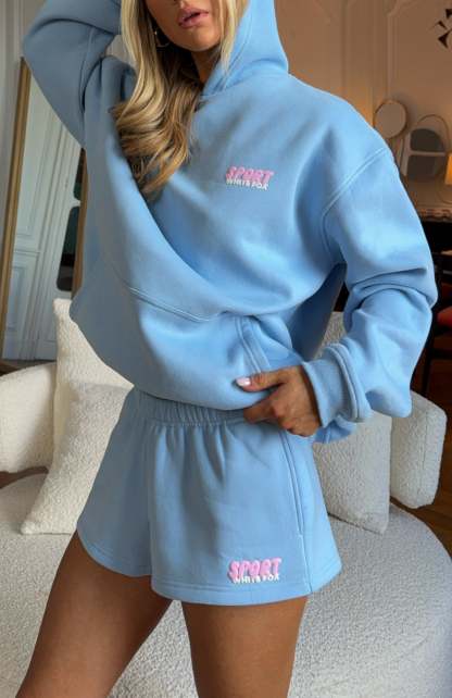 Unwind in style. The Club 14 Peyton Lounge Shorts Blue is designed with a thin elasticated waistband featuring an internal drawstring tie, side hip pockets, and a relaxed silhouette. The White Fox Sport puff print text at the side adds a signature touch, while the unlined fleece interior ensures a cozy feel. Pair with the matching Club 14 Peyton Oversized Hoodie for a colourful and cute look.