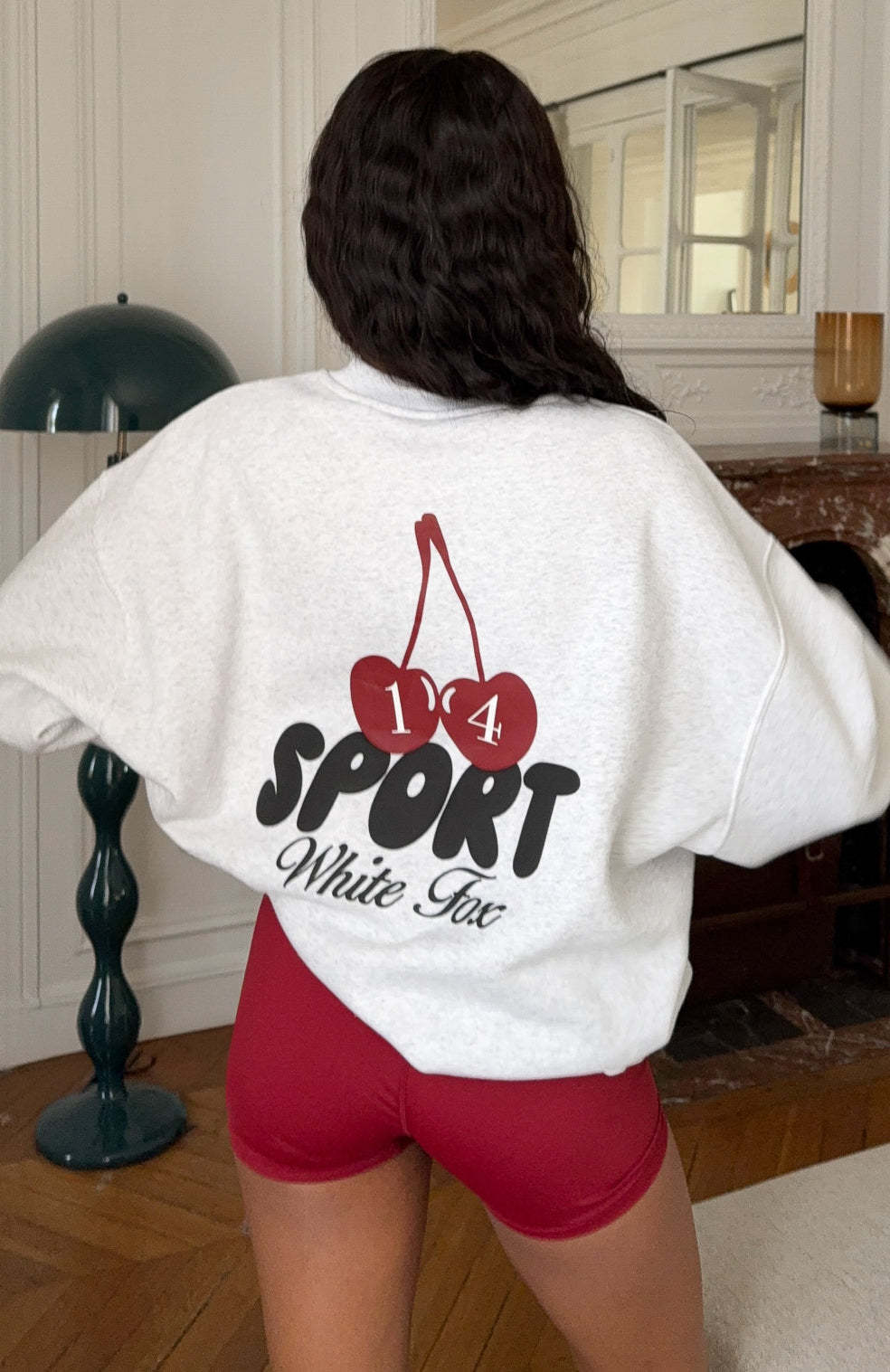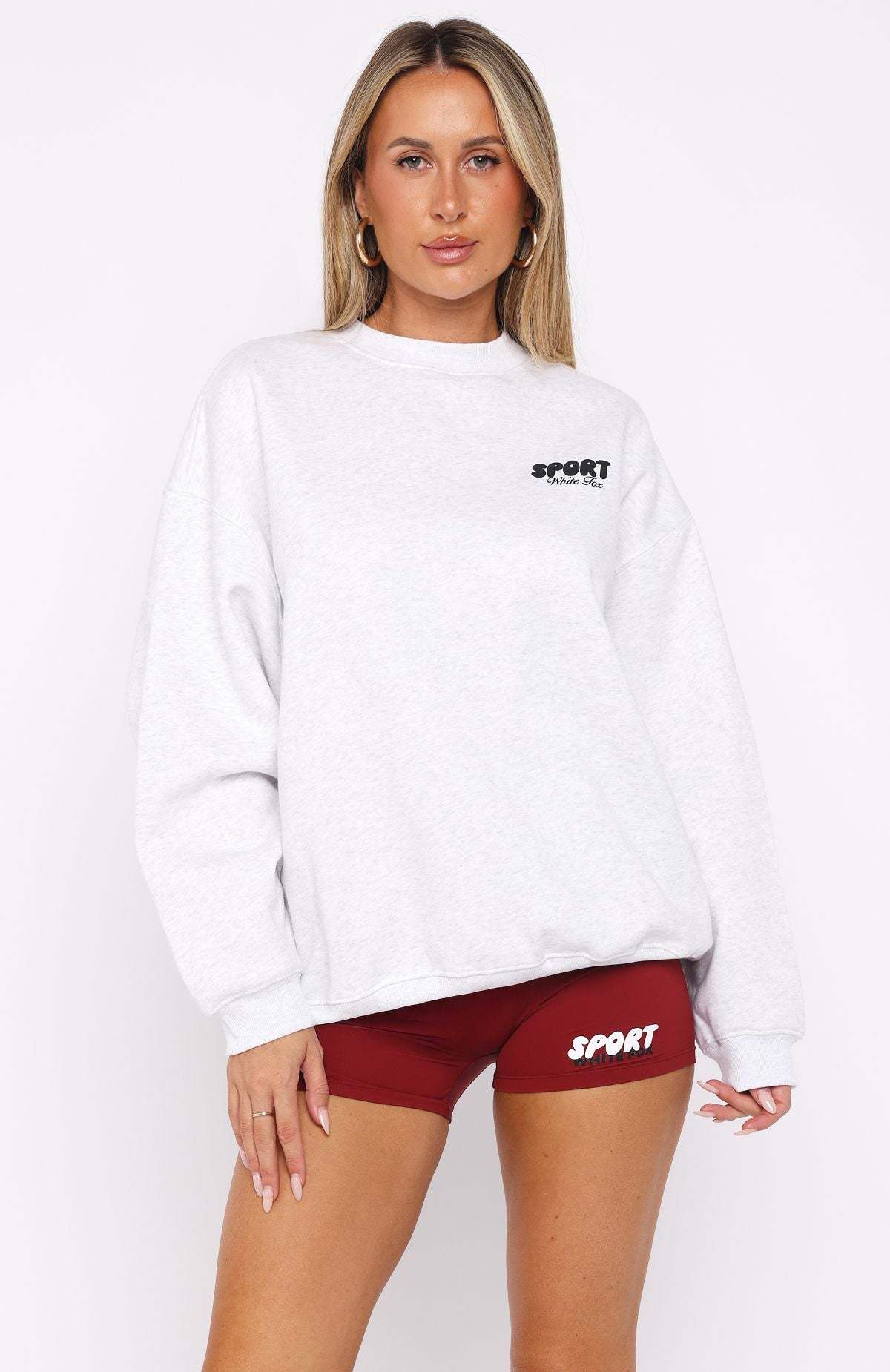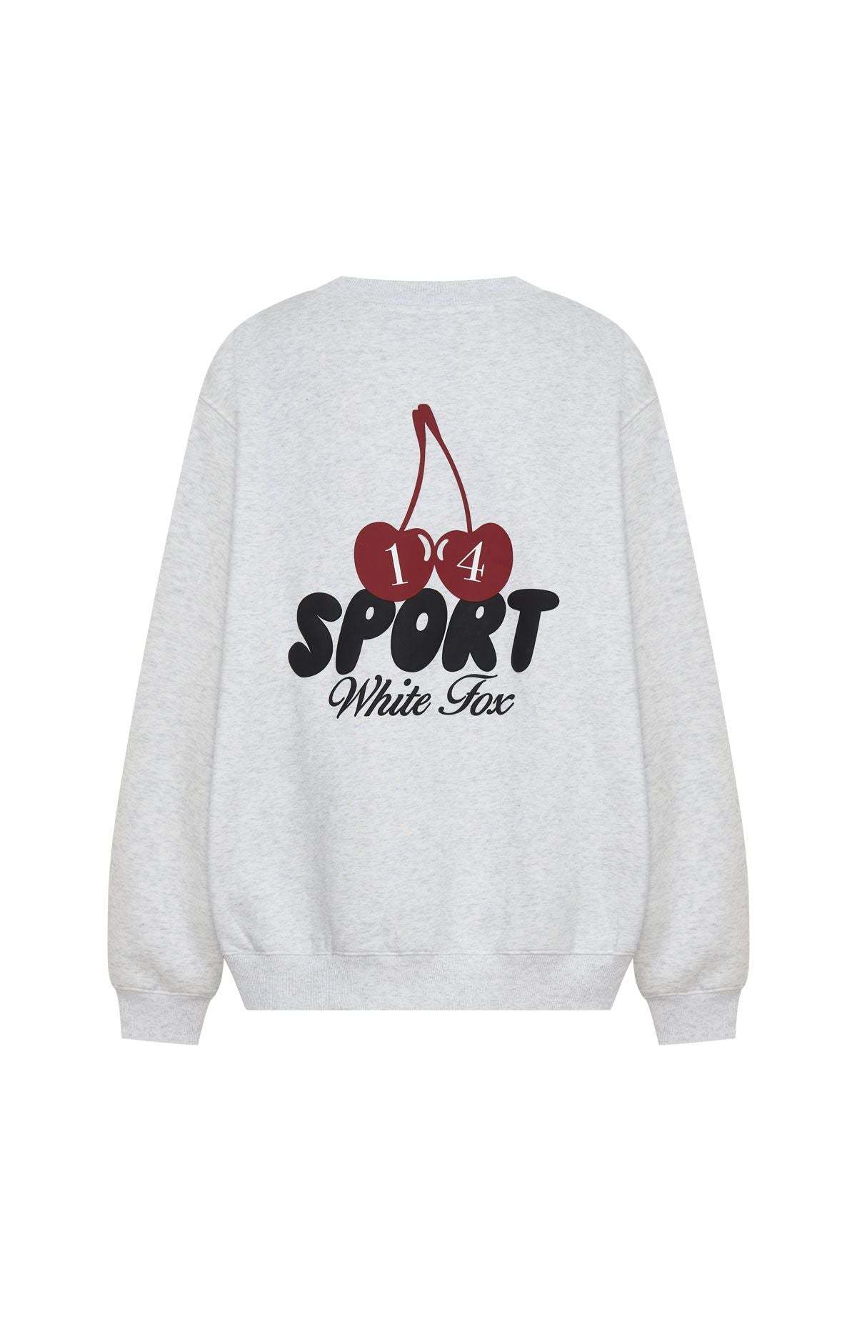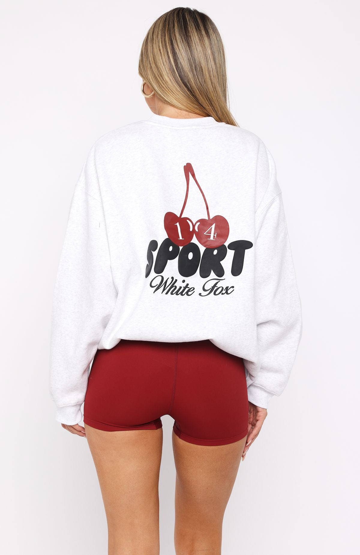 Loungewear, weather state of mind! The Club 14 Peyton Oversized Sweater Grey Marle is designed with a ribbed crew neckline, drop shoulders and ribbed hems, which round out an oversized silhouette. Featuring long sleeves and an unlined fleece interior, this sweater delivers a cozy feel. Finished with puff print Sport White Fox text side front, paired with an oversized cherry graphic centre back. Style with the Club 14 Peyton Bike Shorts for a cosy look.