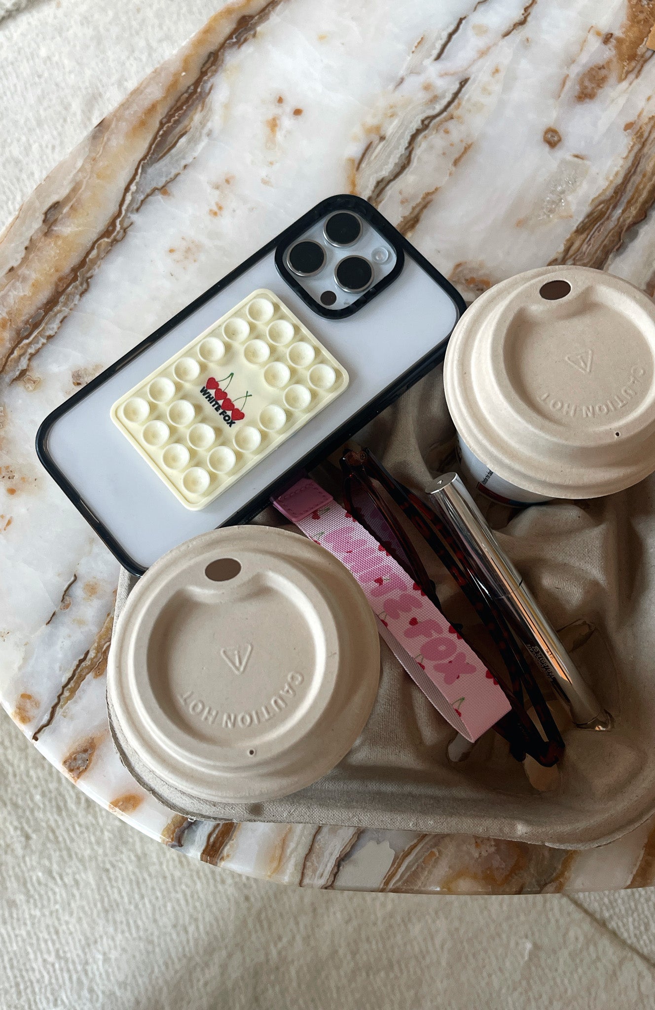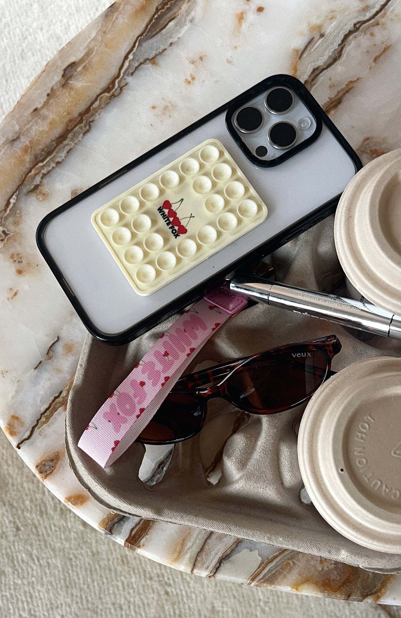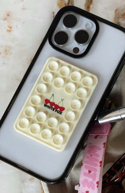 Whether you're snapping selfies, recording workout sessions, or applying makeup, the Club 14 Taylah Phone Grip Lemon is your bestie! Features front sided suction cups, flat adhesive back and printed White Fox text paired with cherry graphic centre front. We are obsessed!