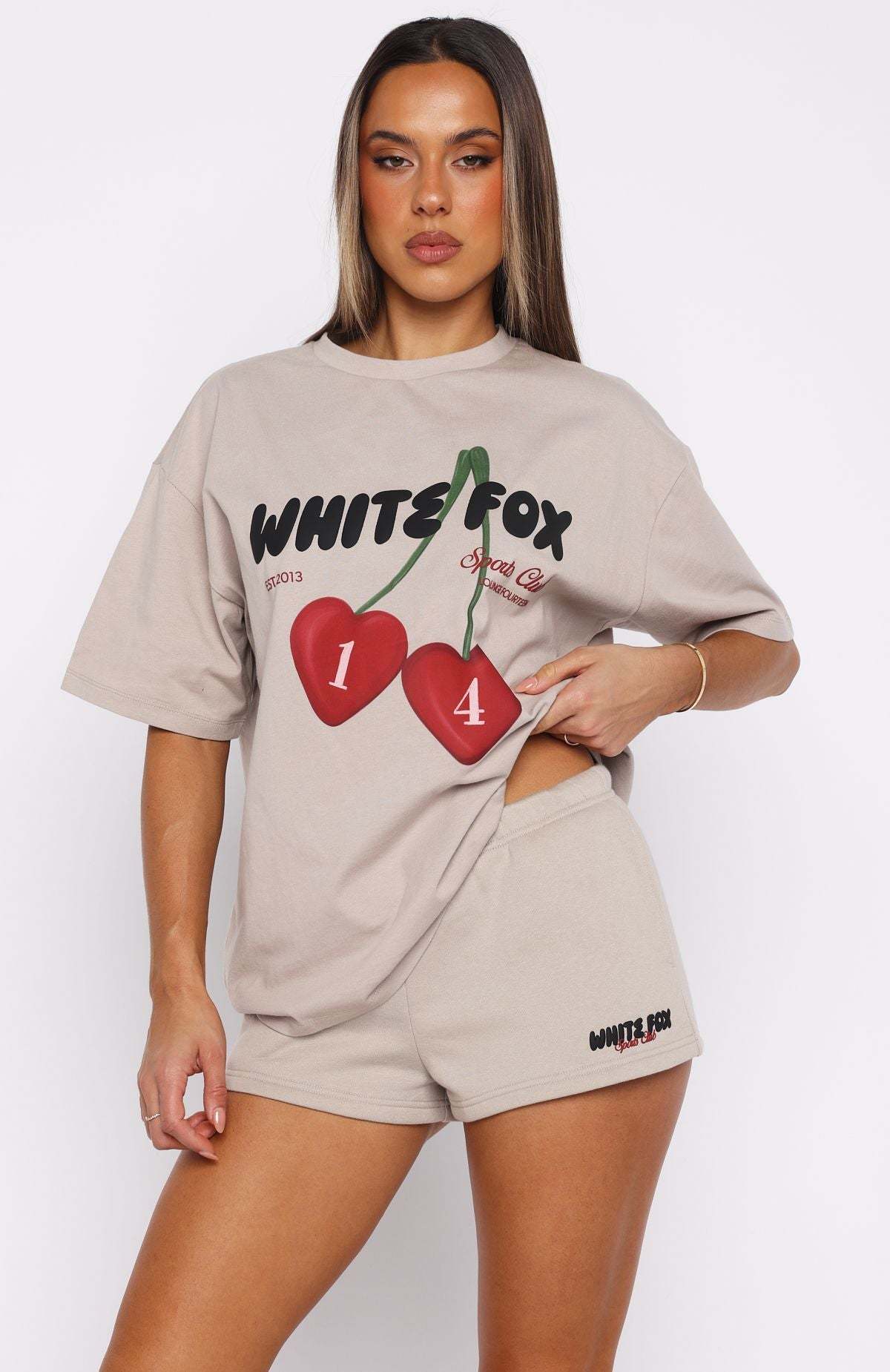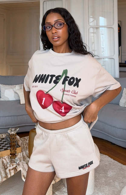 Cozy mornings in the Club 14 Trinity Lounge Shorts in Moon! Designed with a thin elasticated waistband featuring an internal drawstring tie, side hip pockets, and a loose relaxed silhouette. The White Fox print text at the side adds a signature touch, while the unlined fleece interior ensures a cozy feel. For an effortless look pair with the matching Club 14 Trinity Oversized Tee.