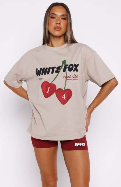 Embrace sporty chill with the Club 14 Trinity Oversized Tee in Moon. This tee features slouched shoulders, a classic crew neckline, and breezy short sleeves. Designed with a comfy oversized silhouette, it showcases a bold cherry graphic paired with the White Fox puff print logo at the center front. Complete the look with Club 14 Trinity Lounge Shorts or Club 14 Trinity Sweatpants.