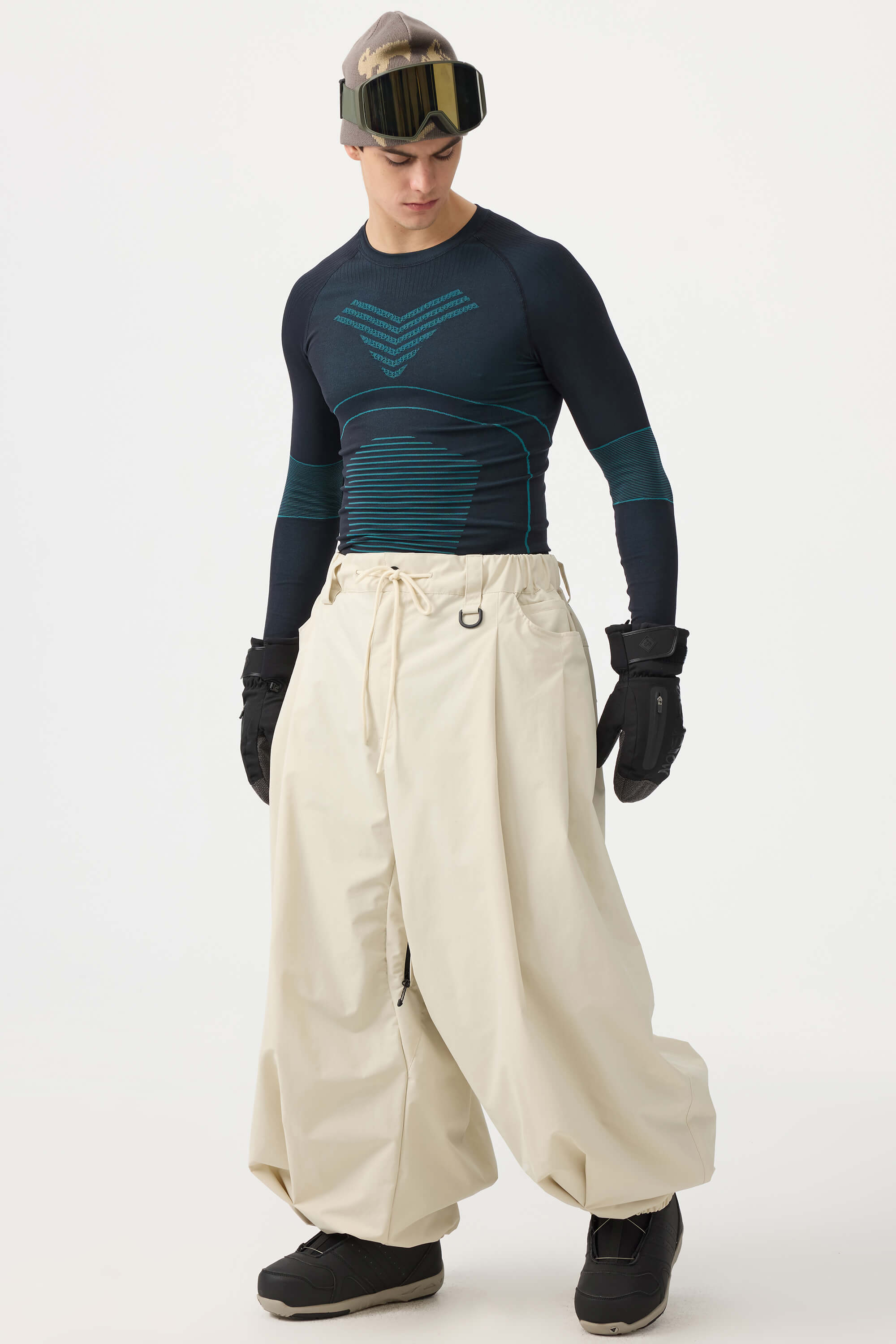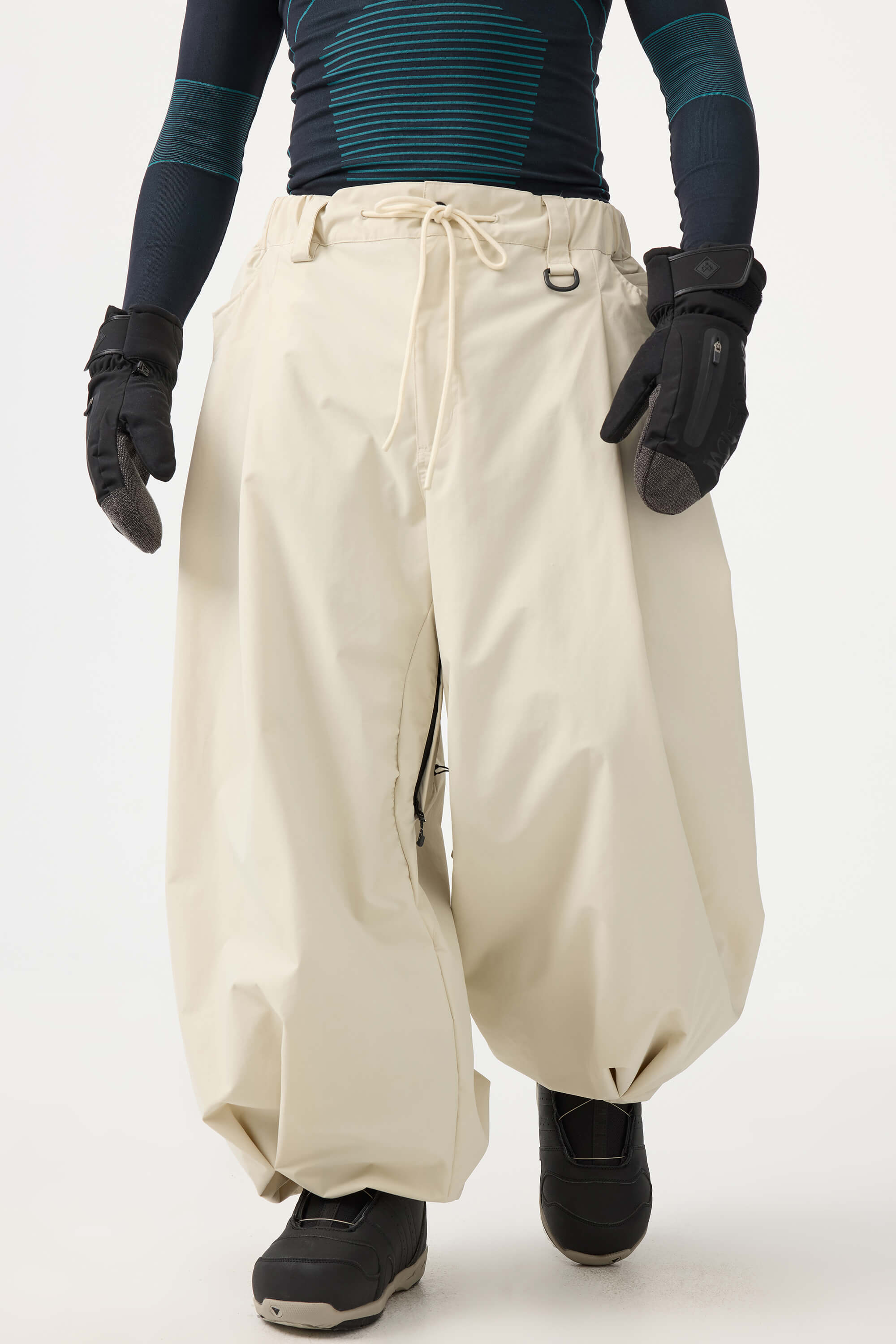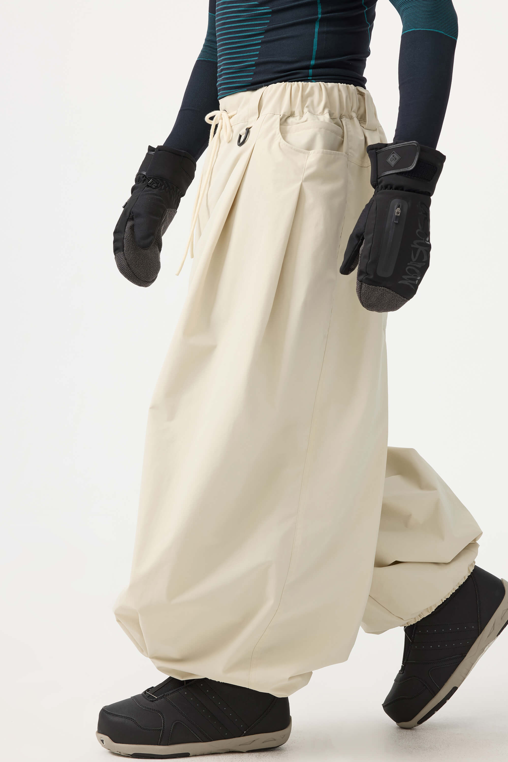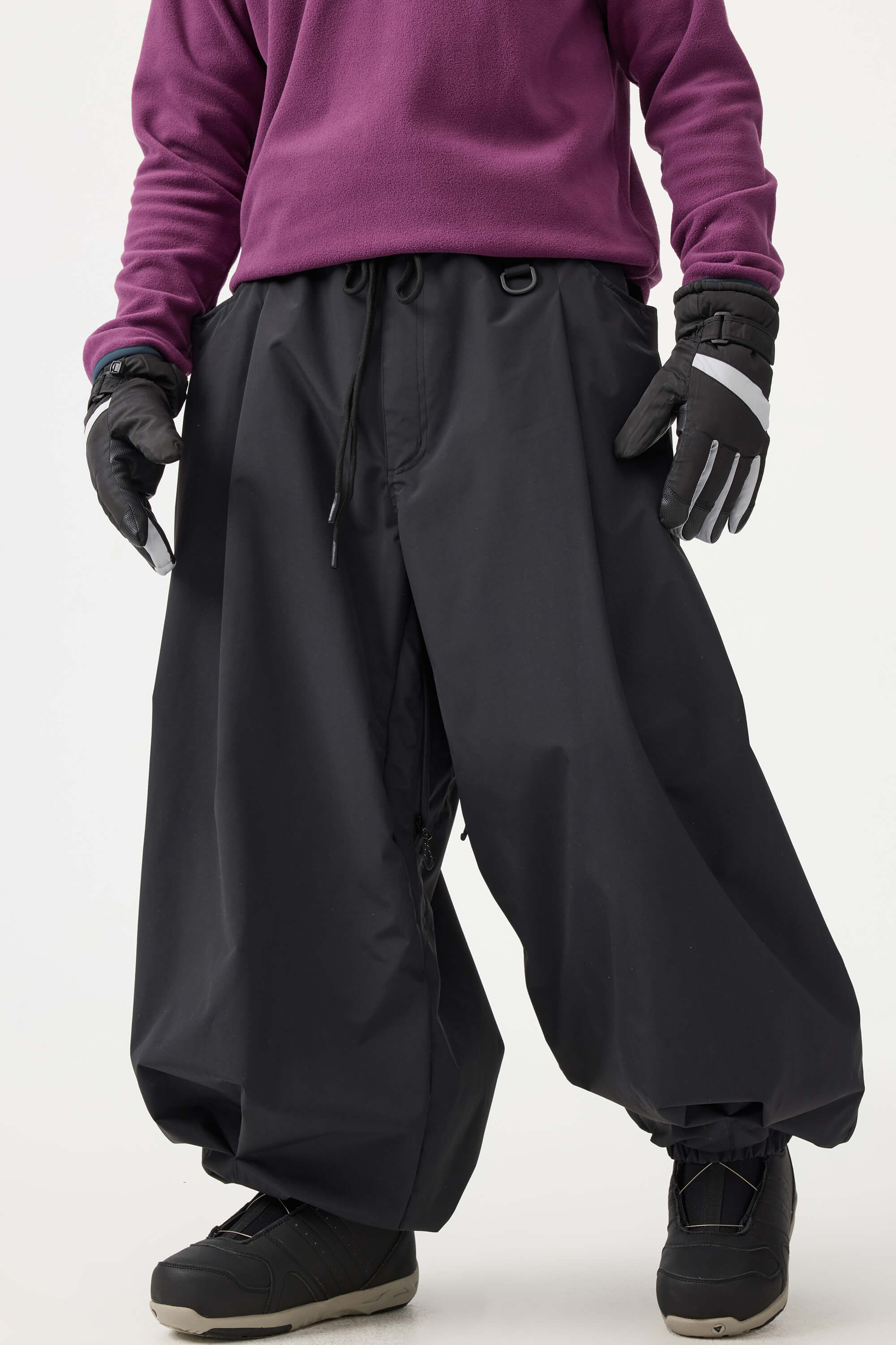 Crafted with advanced nylon weaving and a water-resistant coating, these pants offer superior abrasion resistance and long-lasting durability. With a next-gen silicone anti-slip powder skirt and a drawstring elasticated waistband, they keep you warm, snug, and stylish while offering a comfortable, baggy fit.