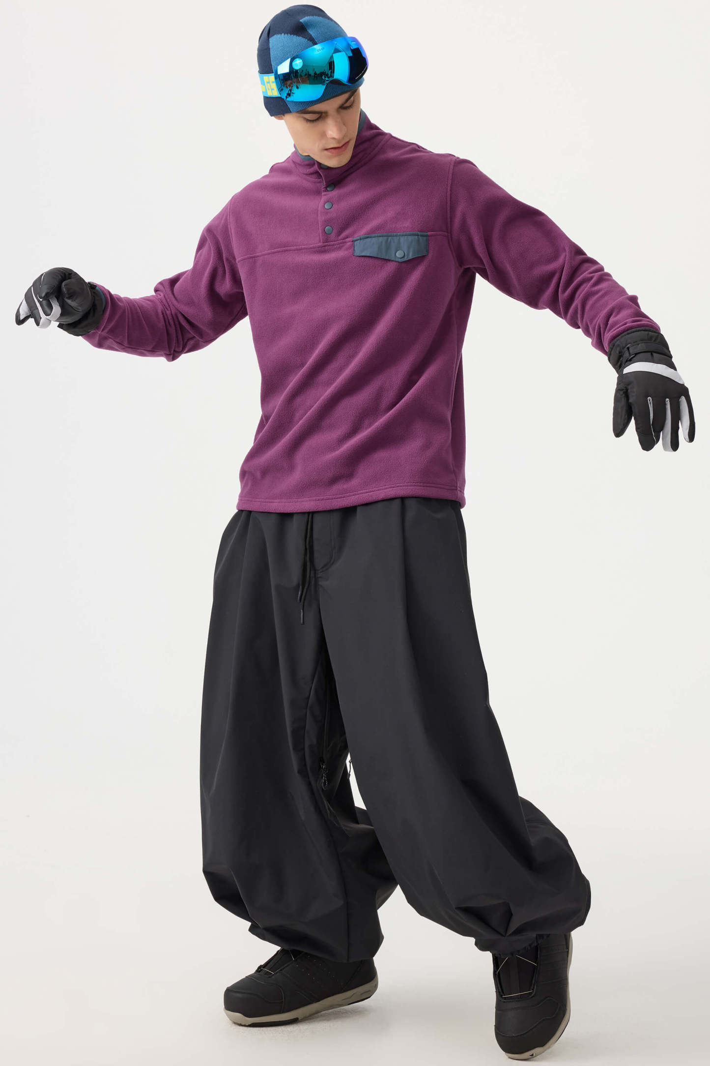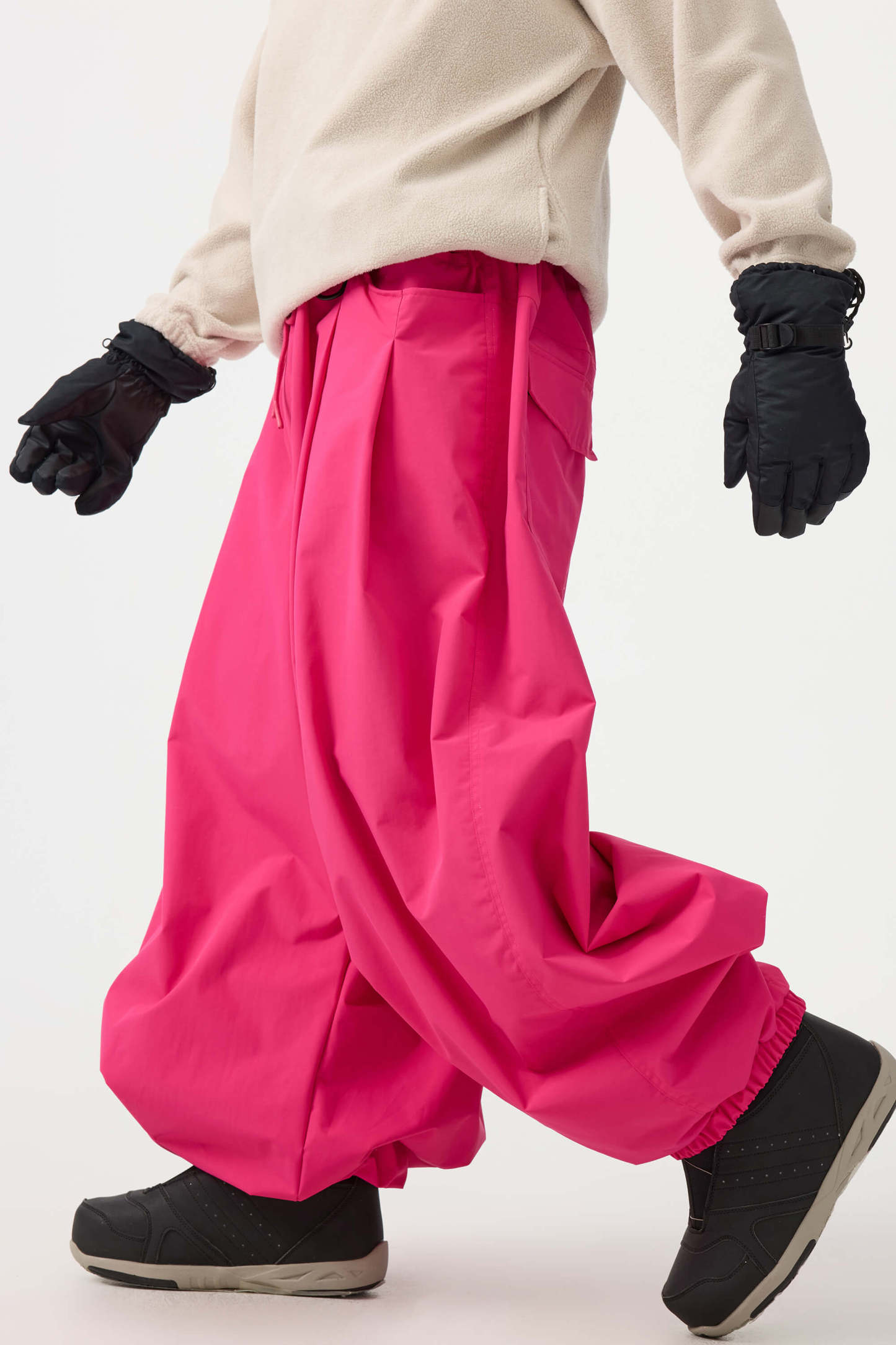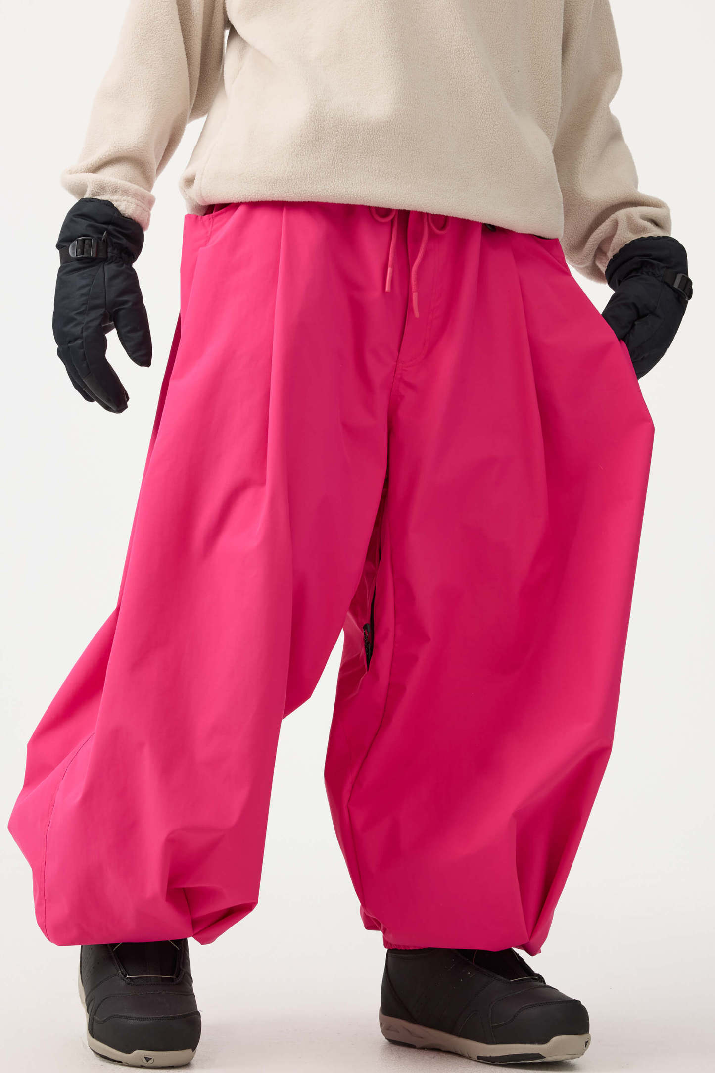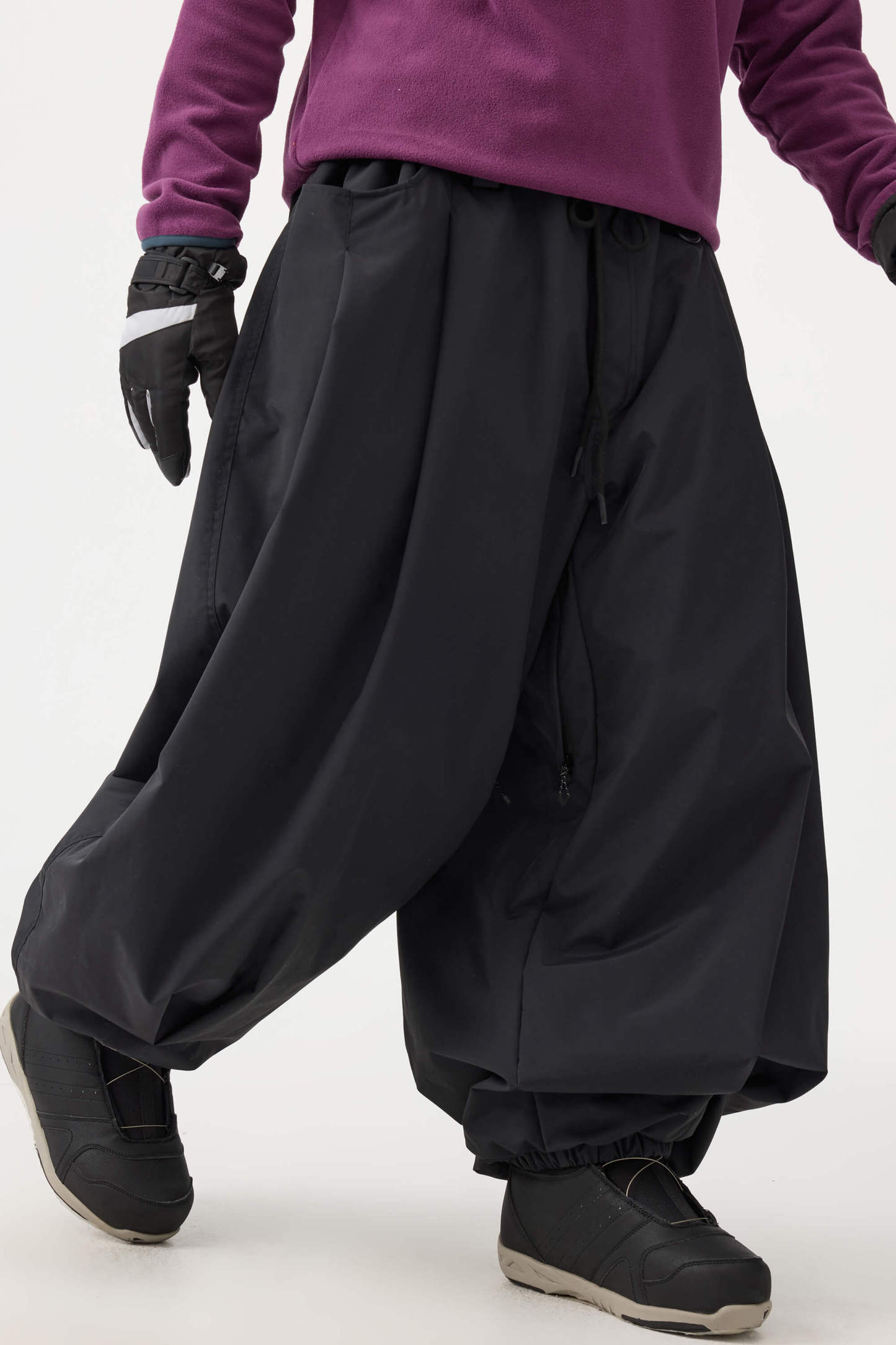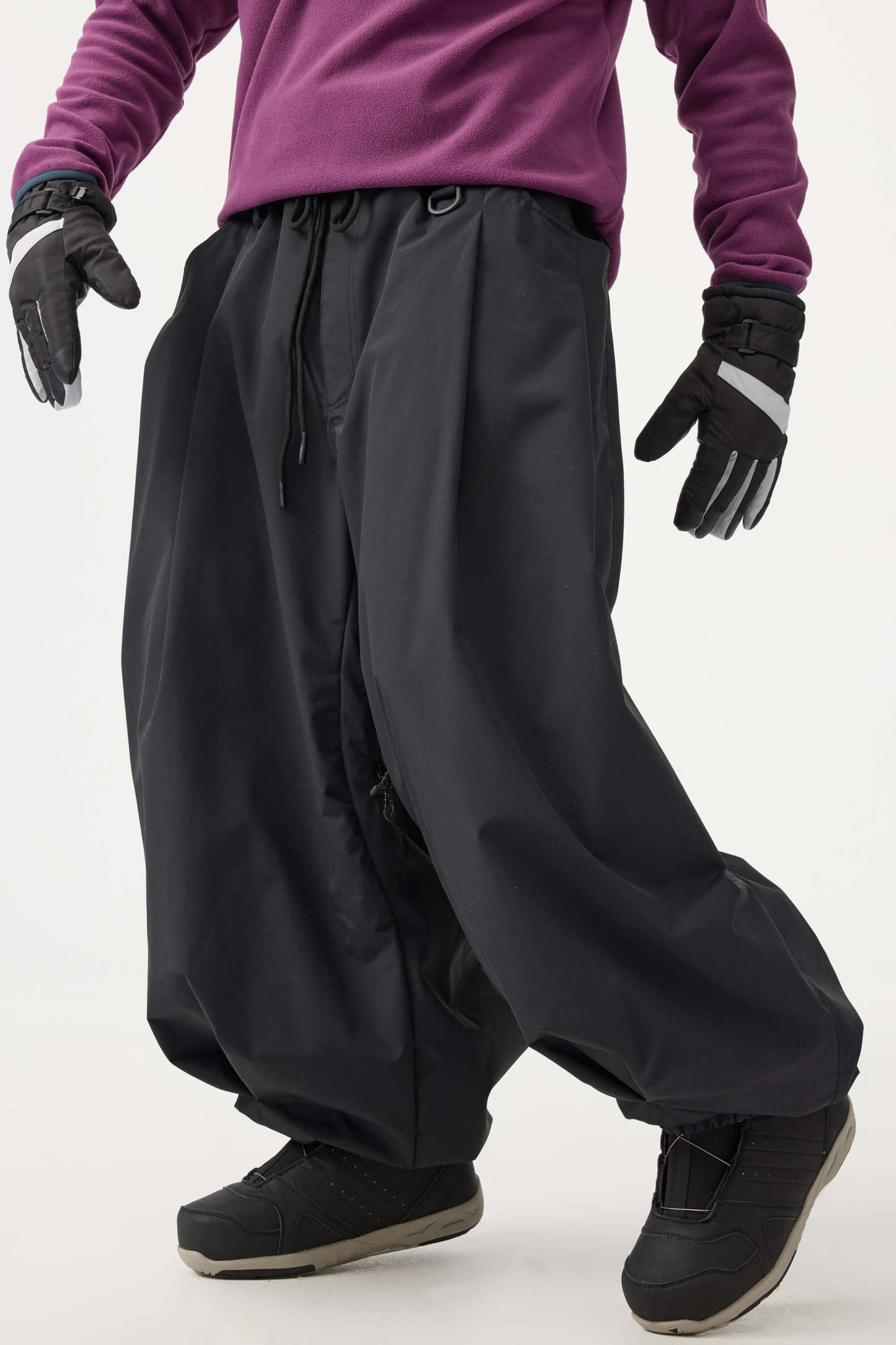 Crafted with advanced nylon weaving and a water-resistant coating, these pants offer superior abrasion resistance and long-lasting durability. With a next-gen silicone anti-slip powder skirt and a drawstring elasticated waistband, they keep you warm, snug, and stylish while offering a comfortable, baggy fit.