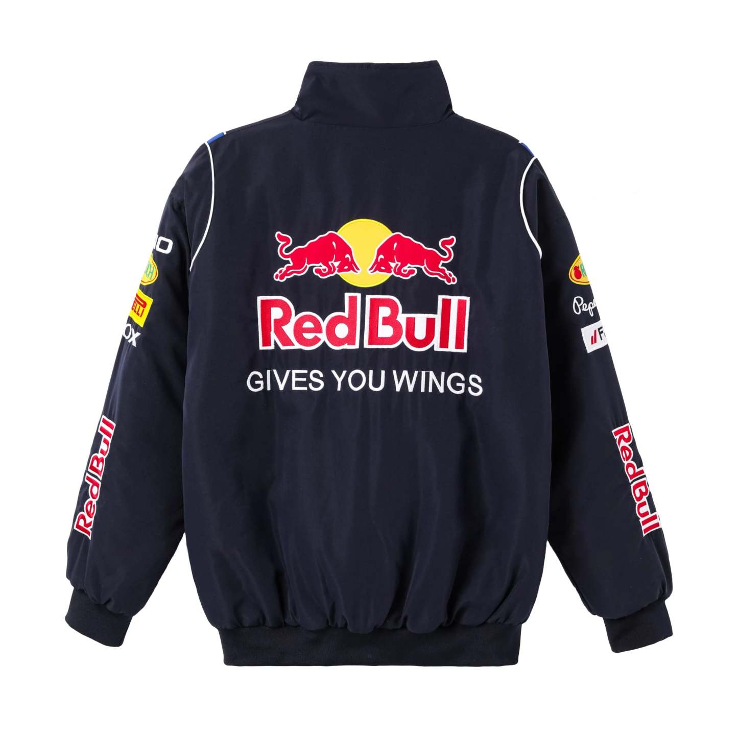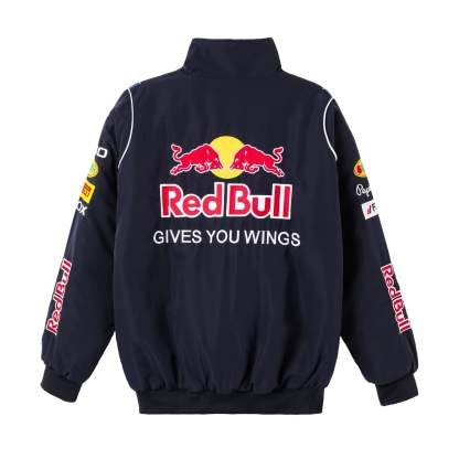 Indulge in the timeless allure of Red Bulls racing legacy with our vintage F1 jacket. Adorned in the iconic blue, this jacket is a homage to the iconic Red Bull F1 era, embodying the passion, speed, and prestige synonymous with the legendary racing team.
