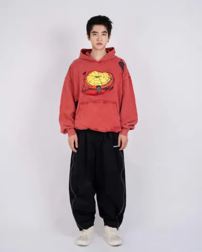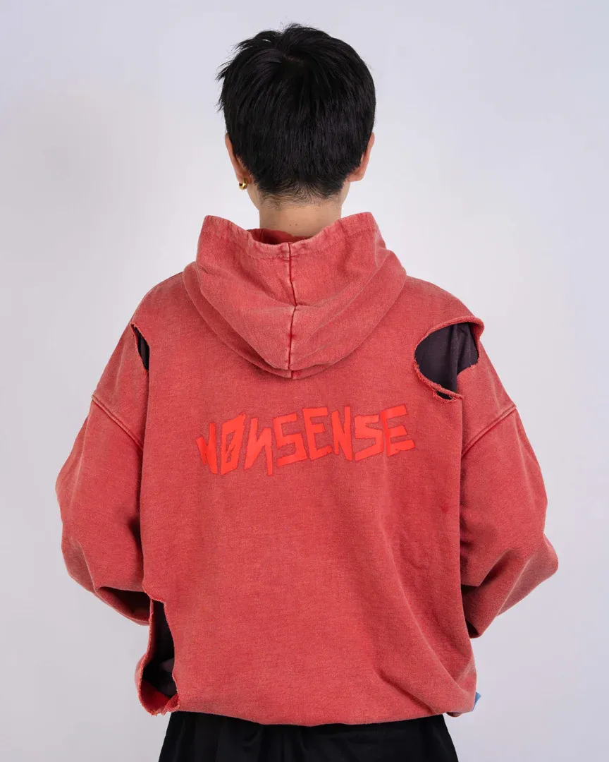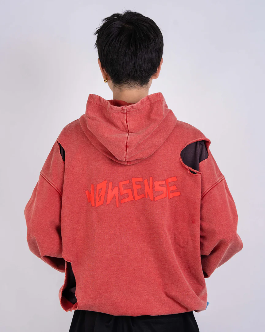 The TURBO GRANNY WEATHERED HOODIE is crafted in soft cotton with a washed finish and raw cuts throughout. Features a bold front graphic inspired by Turbo Granny and a NONSENSE logo print on the back.