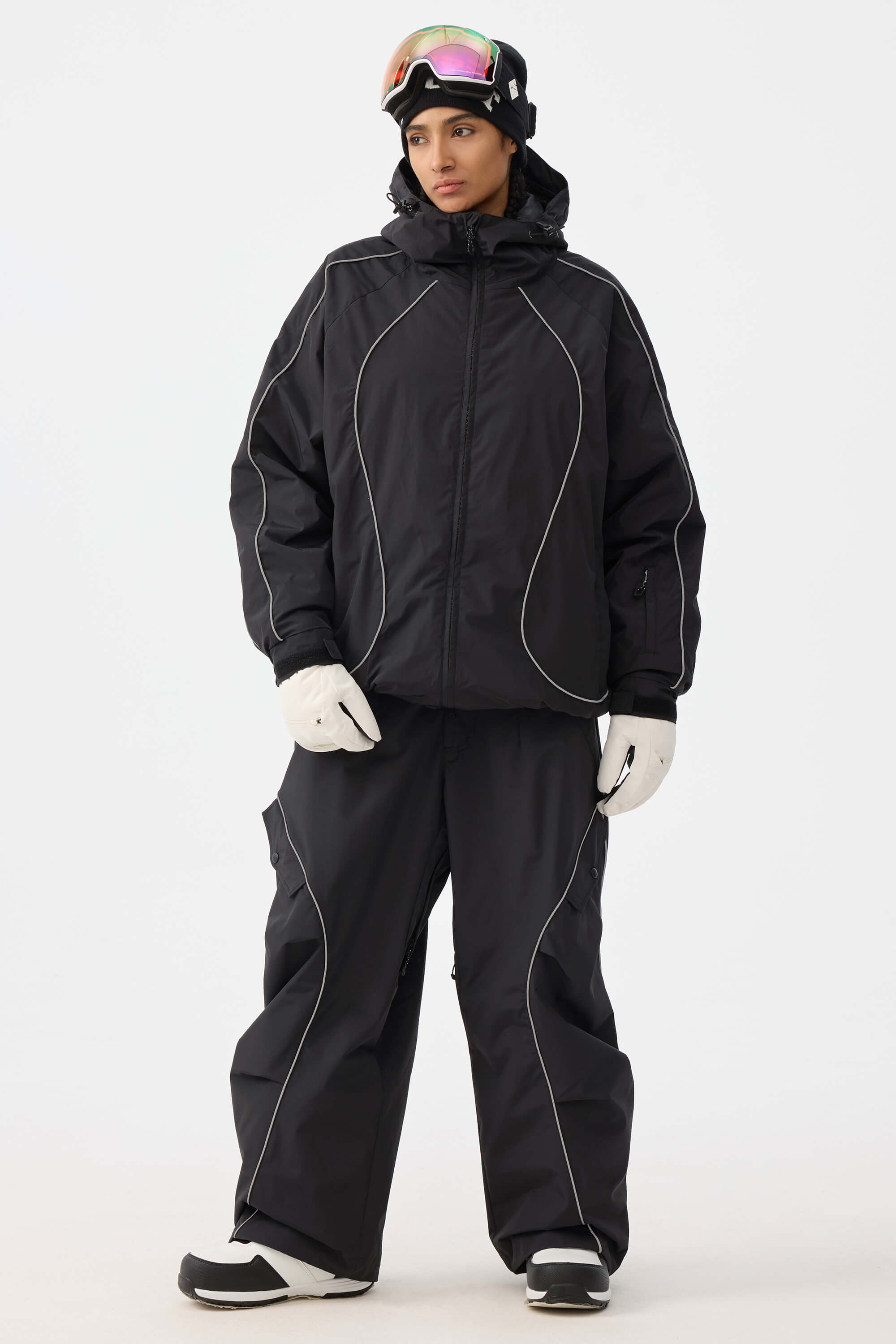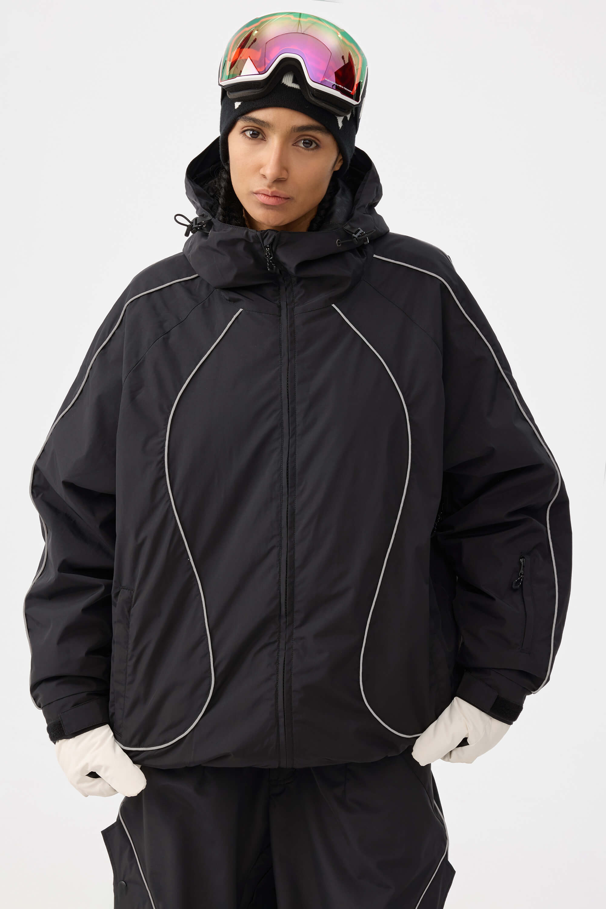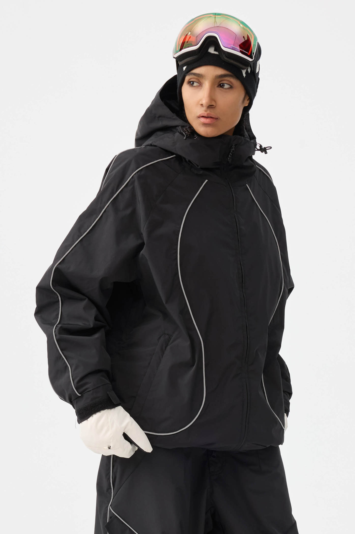Reflective Piping enhance visibility in low light while outlining the jacket’s shape with a bold 3D glow. Featuring a two-way zipper for convenience and waterproof, abrasion-resistant fabric, perfect for the slopes and stylish for the streets.