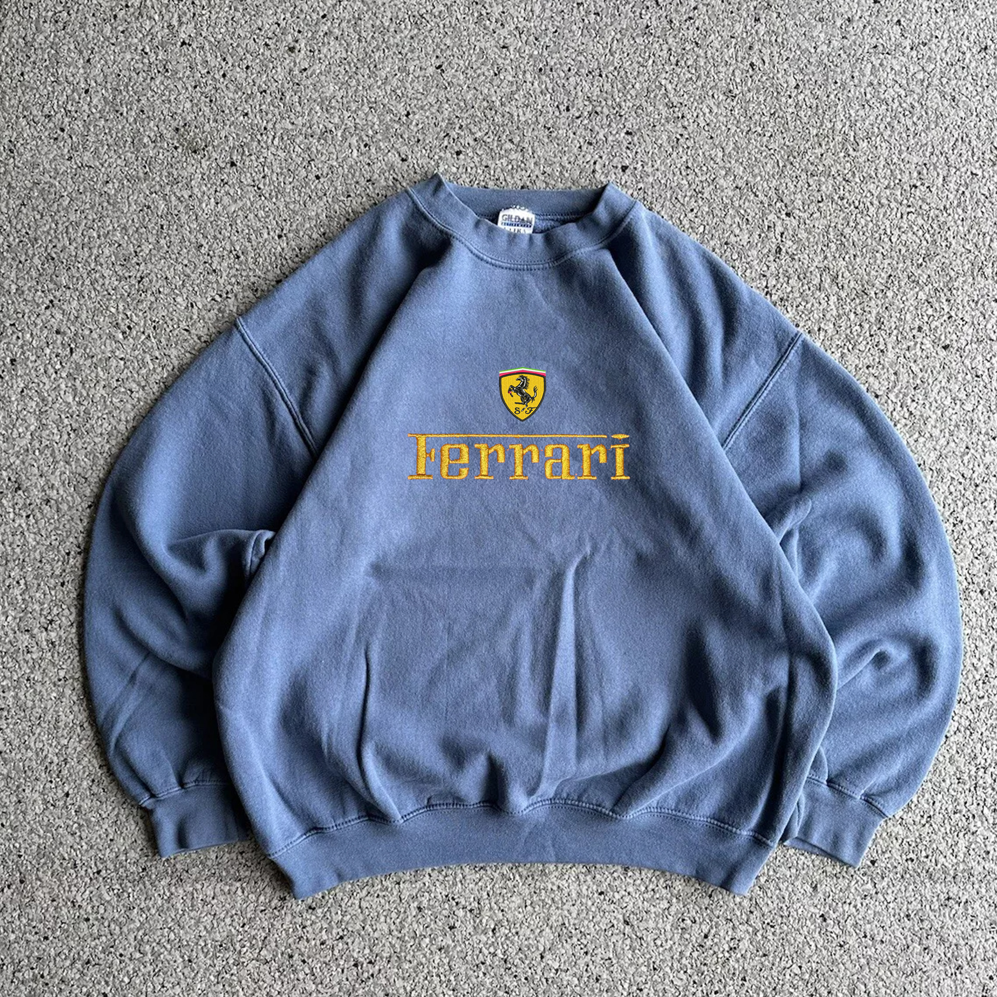Unisex Vintage Machine Embroidered Racing Oversized Sweatshirt