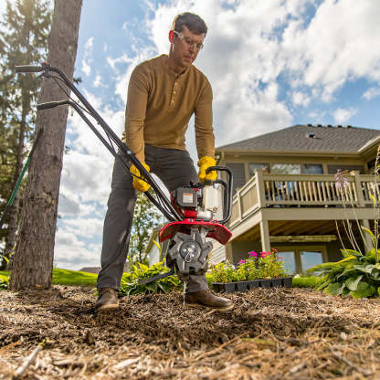 - Use the regular tine configuration and the FG110 will till 9 inches wide. In tight spots, remove the outer tines to till only 6 inches wide. Till within 1 inch of plants without damage.