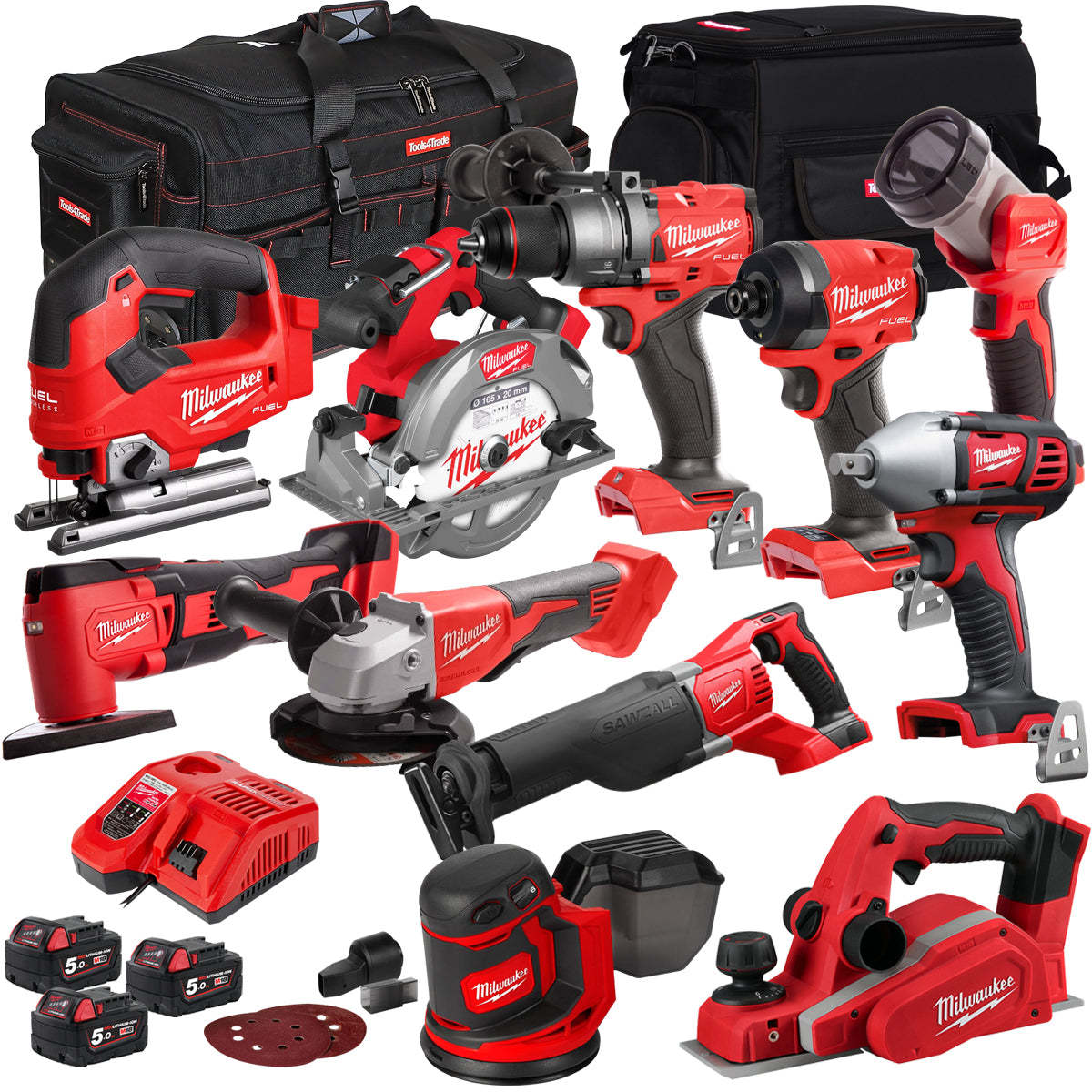 The Milwaukee 18V 11 Piece Power Tool Kit is perfect for busy tradesmen and sites.
