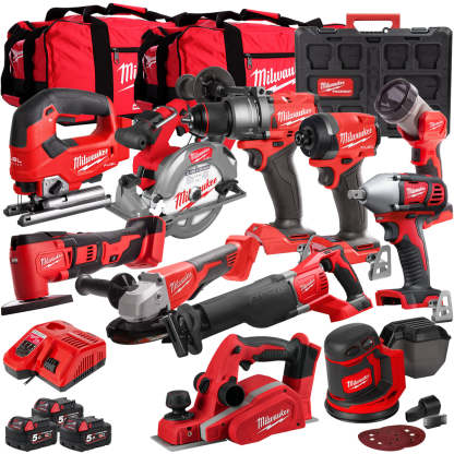 The Milwaukee 18V 11 Piece Power Tool Kit is perfect for busy tradesmen and sites.